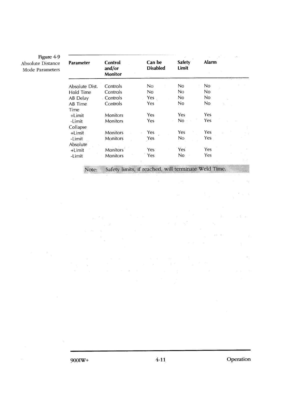 Safety limits, if reached, will terminate Weld Time.