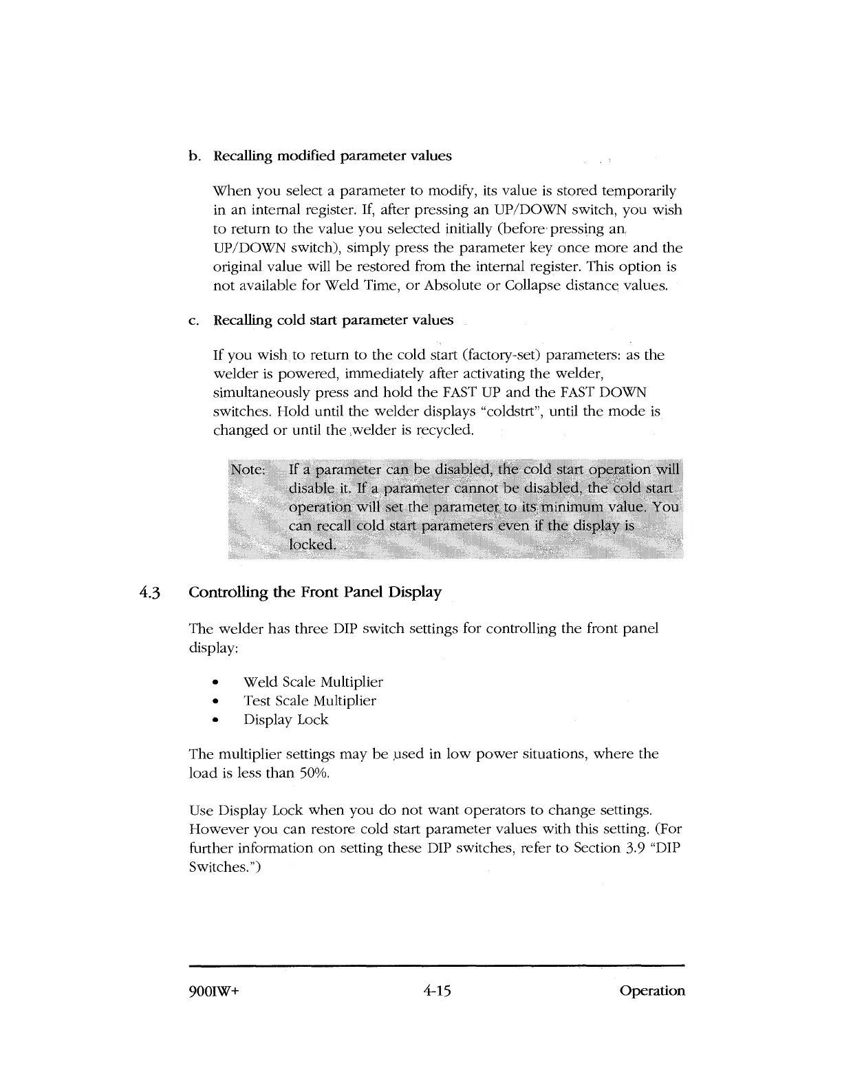 switches. Hold until the welder displays "coldstrt", until the mode is