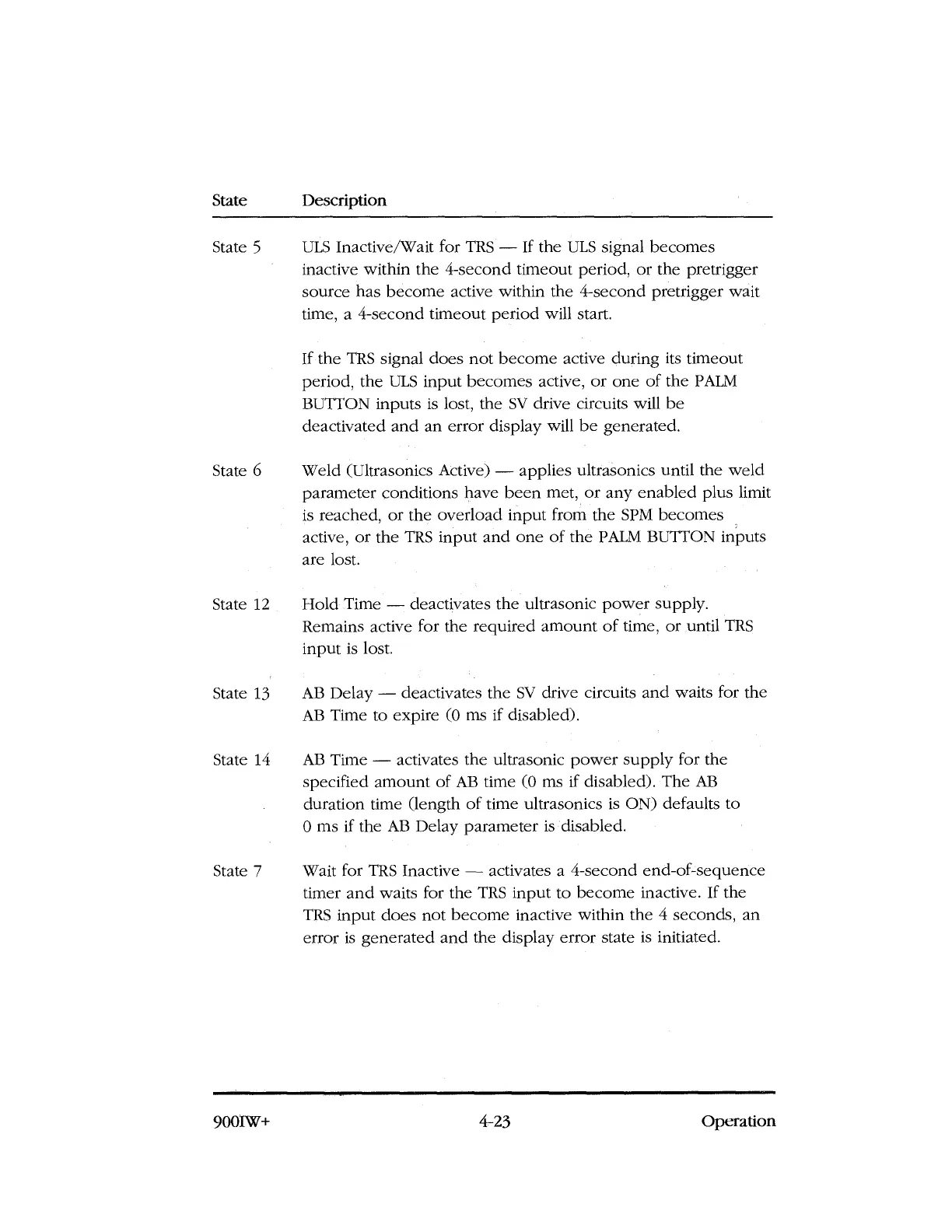 Hold Time — deactivates the ultrasonic power supply.