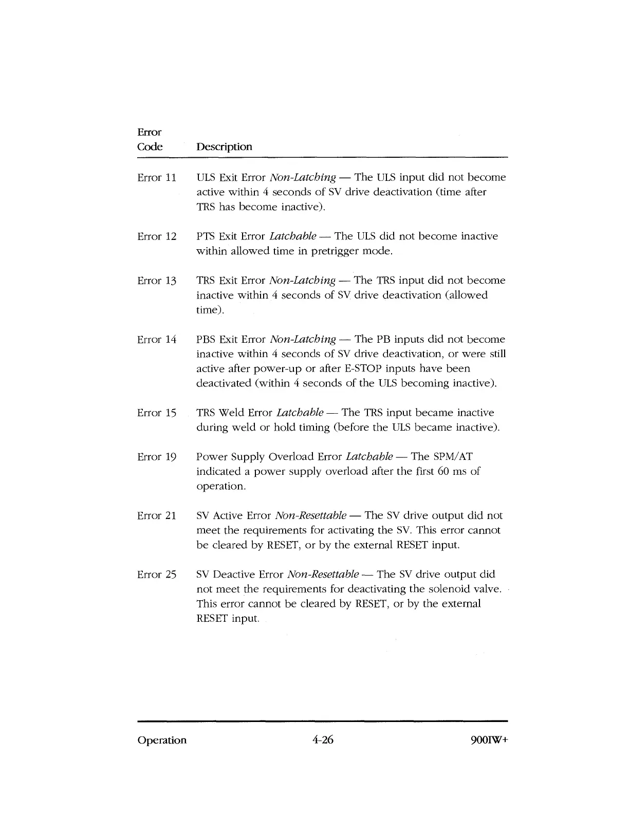 This error cannot be cleared by RESET, or by the external