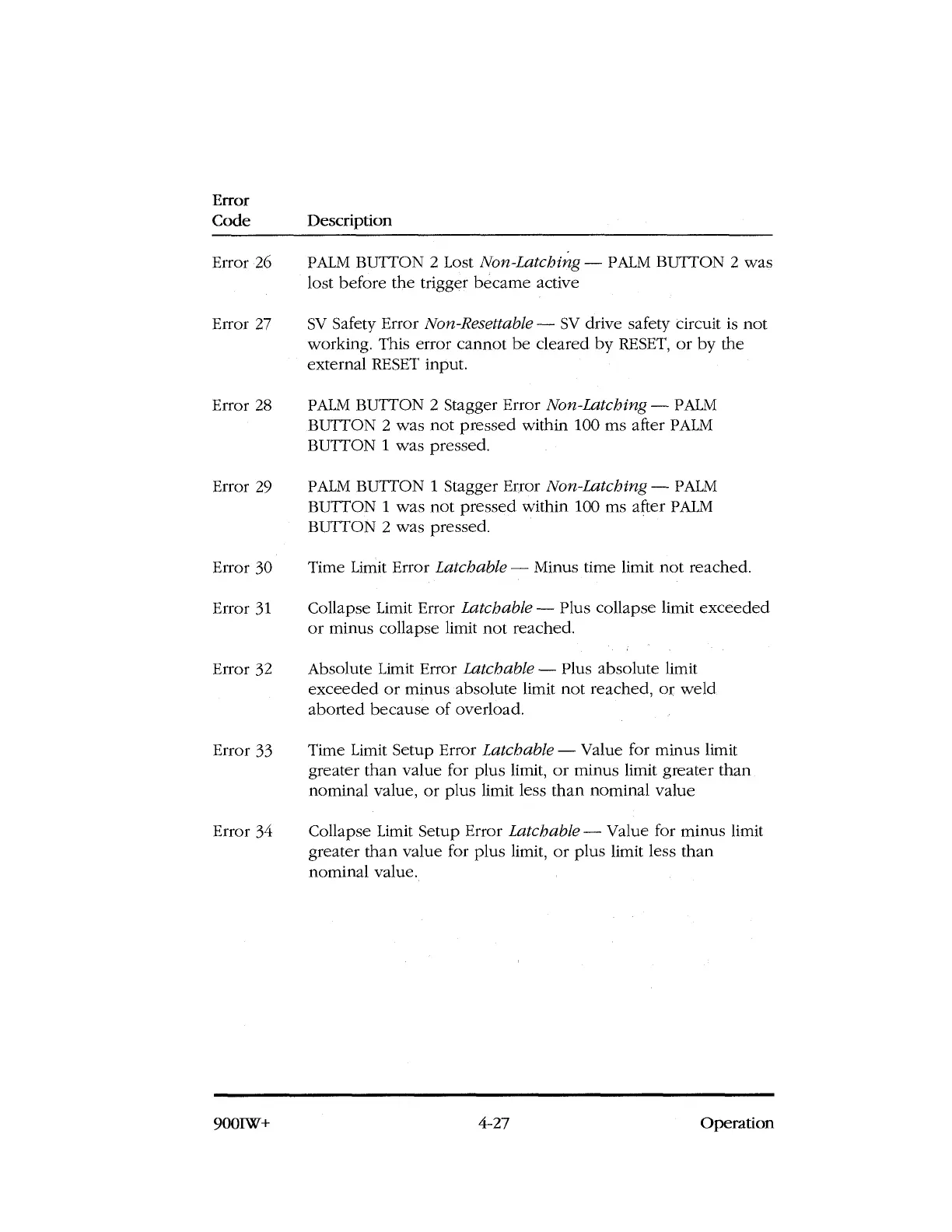 working. This error cannot be cleared by RESET, or by the
