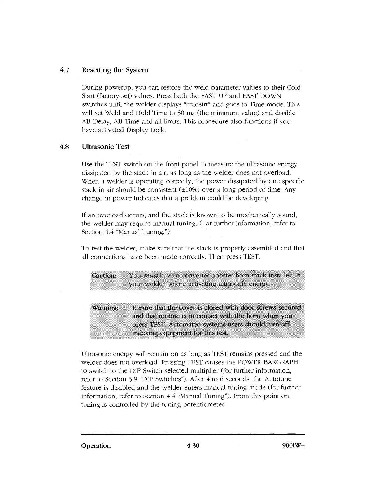 Ultrasonic energy will remain on as long as TEST remains pressed and the