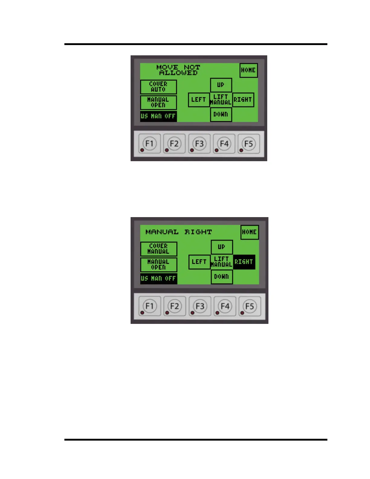 stroke. The display will show MANUAL RIGHT as shown in Figure 4-24 below.