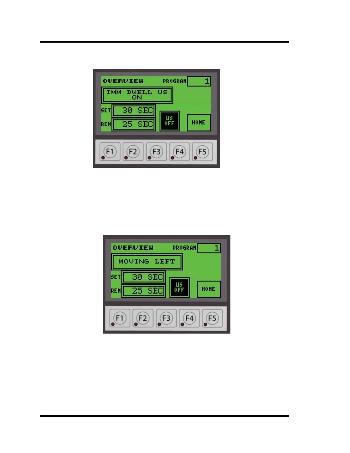 The ultrasonics will operate if US is set to ON as shown in Figure 4-37.
