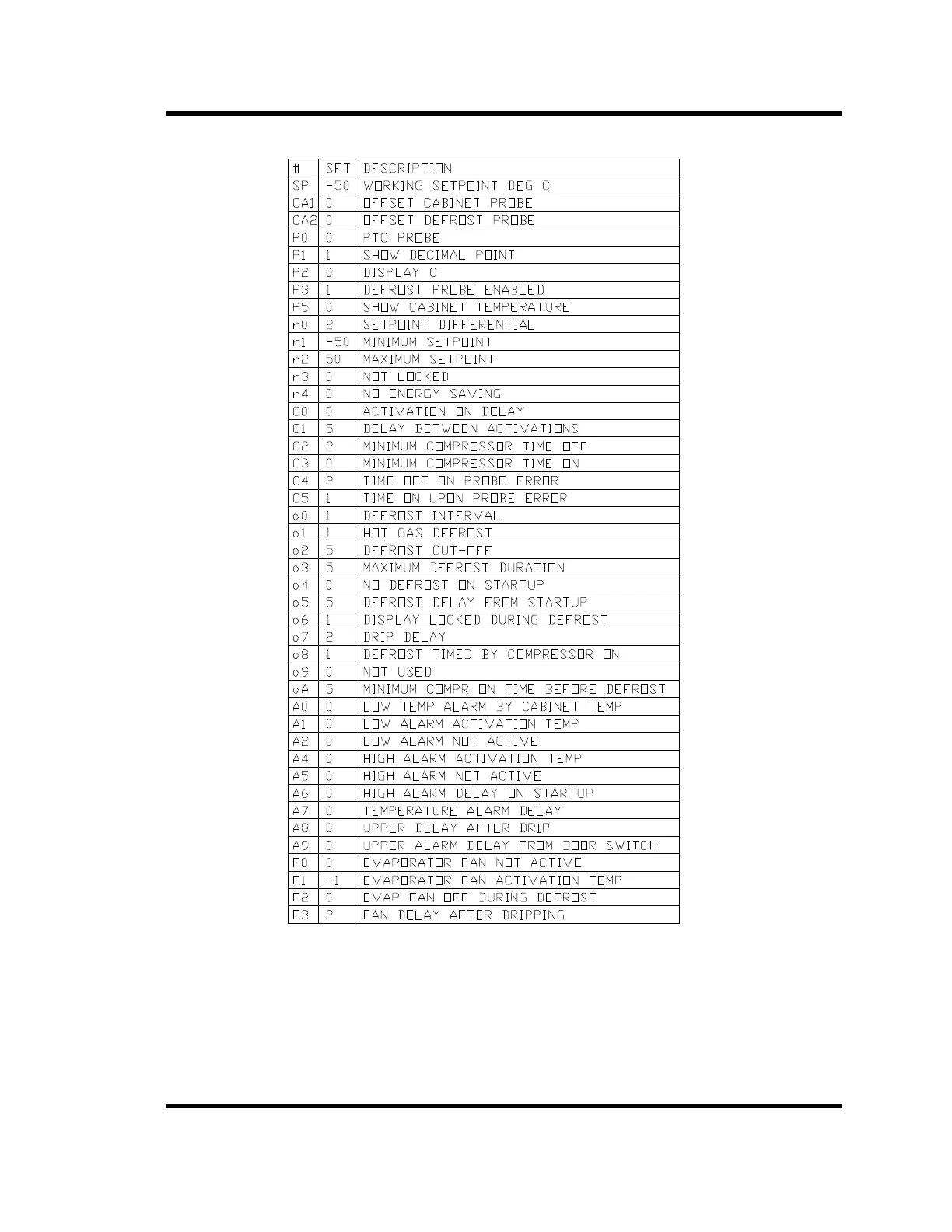 Table 5-1 Defrost Controller Parameters