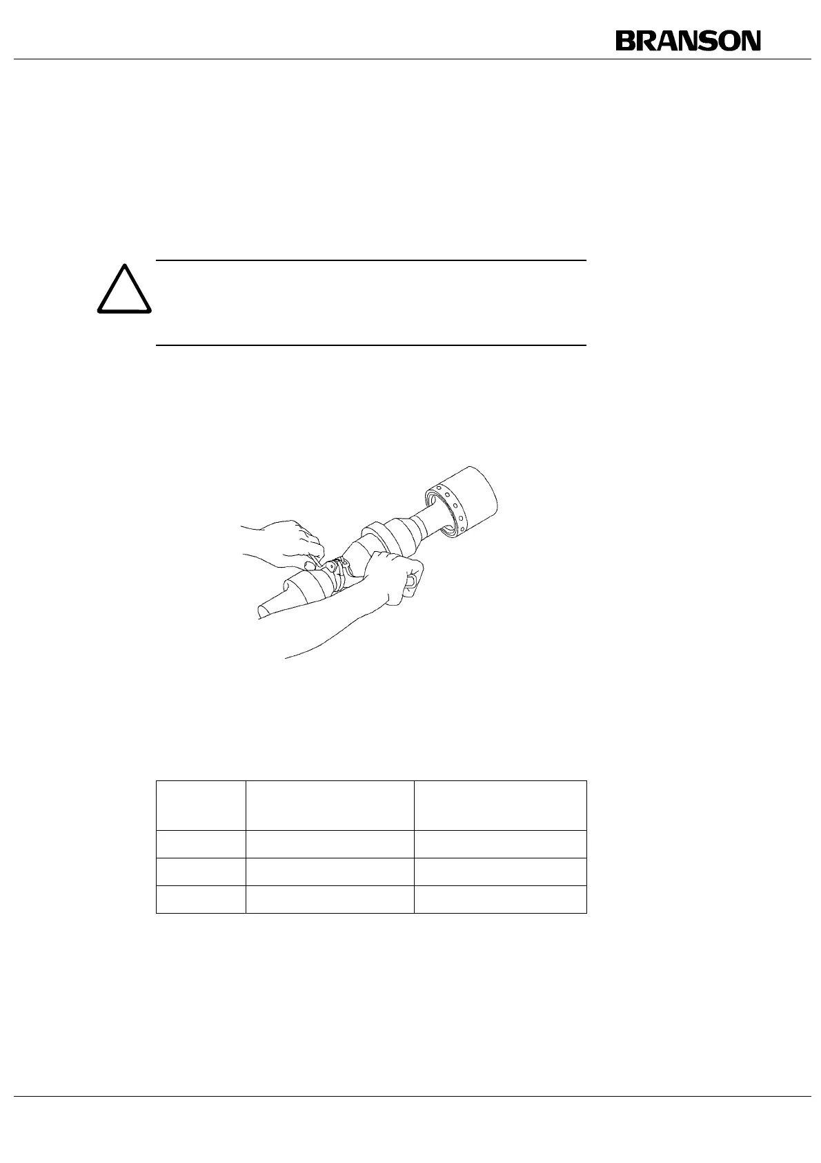 applying a torque of 13 Nm. Use one or two BRANSON open end
