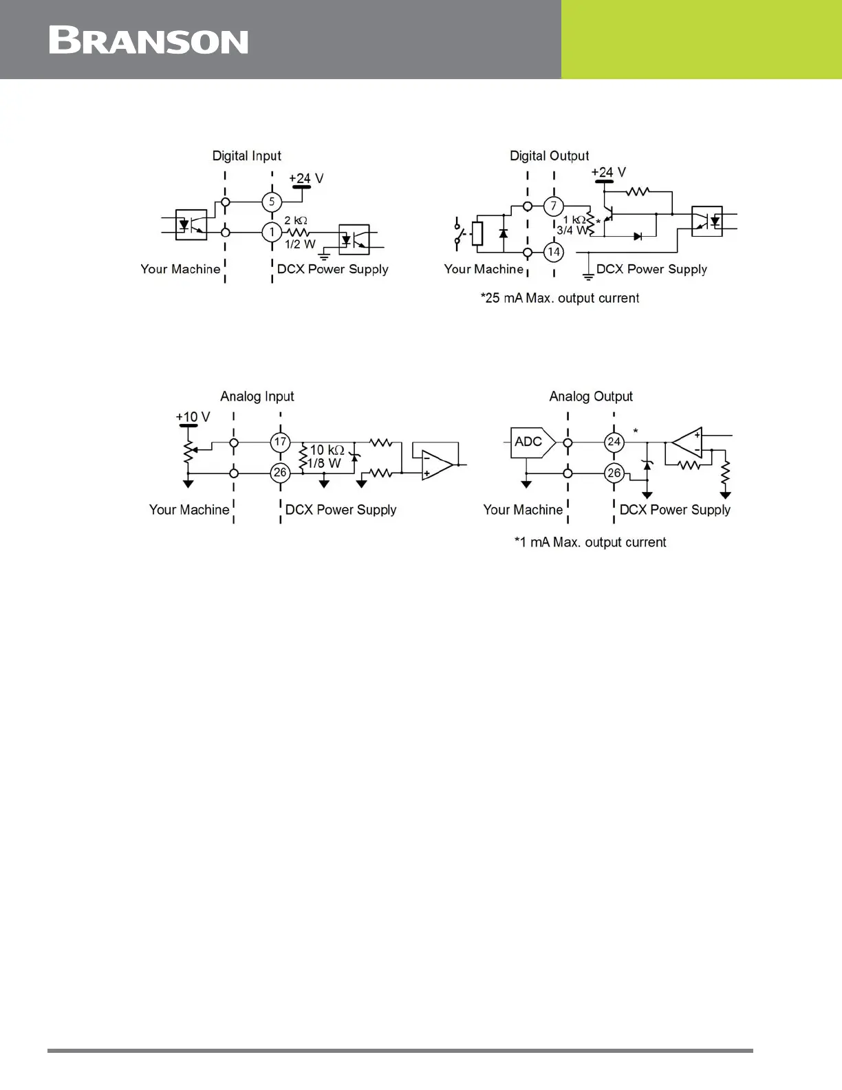 Branson DCX A Series - Figure 5.9 Typical Digital I;O Wiring Examples; Figure 5.10 Typical Analog I;O Wiring Examples