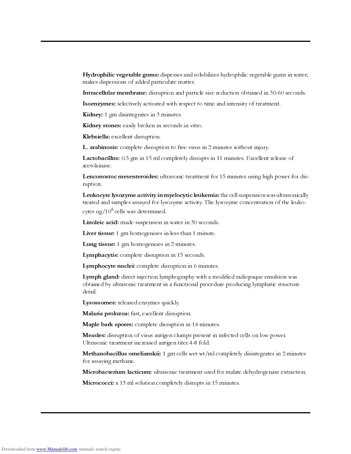 0.5 gm in 15 ml completely disrupts in 11 minutes. Excellent release of