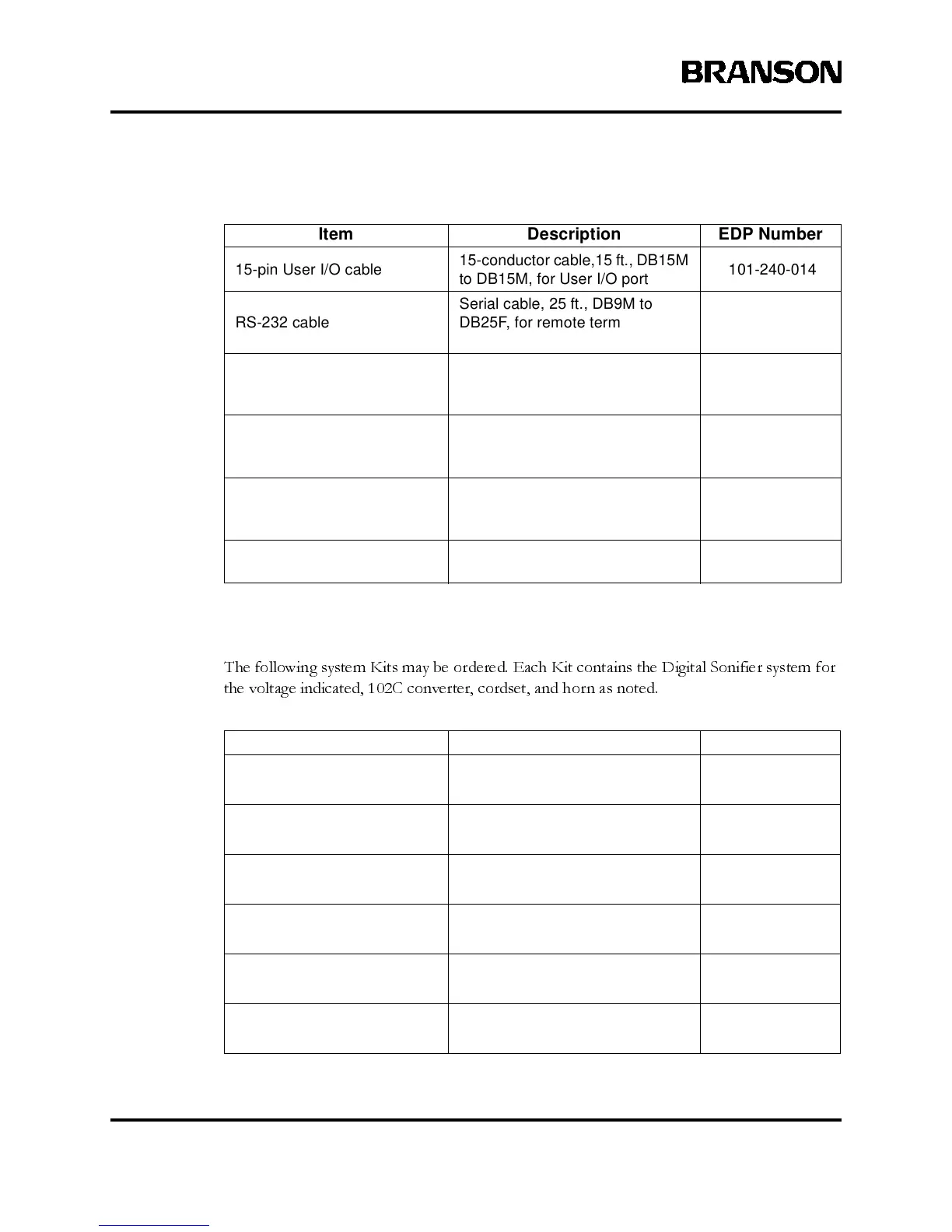 The following system Kits may be ordered. Each Kit contains the Digital Sonifier system for