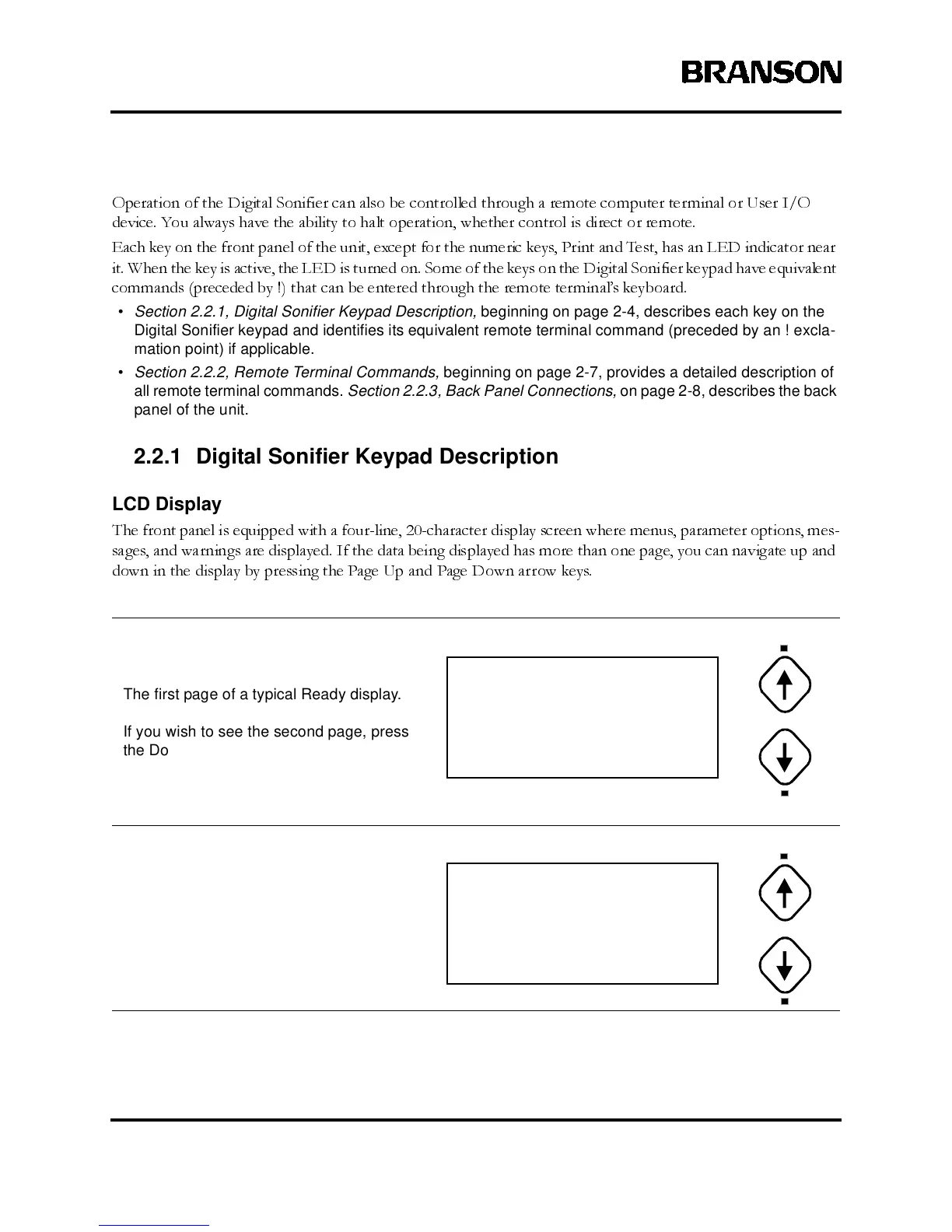 • Section 2.2.1, Digital Sonifier Keypad Description, beginning on page 2-4, describes each key on the