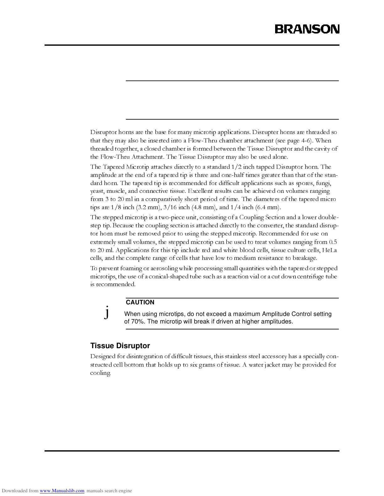 j When using microtips, do not exceed a maximum Amplitude Control setting