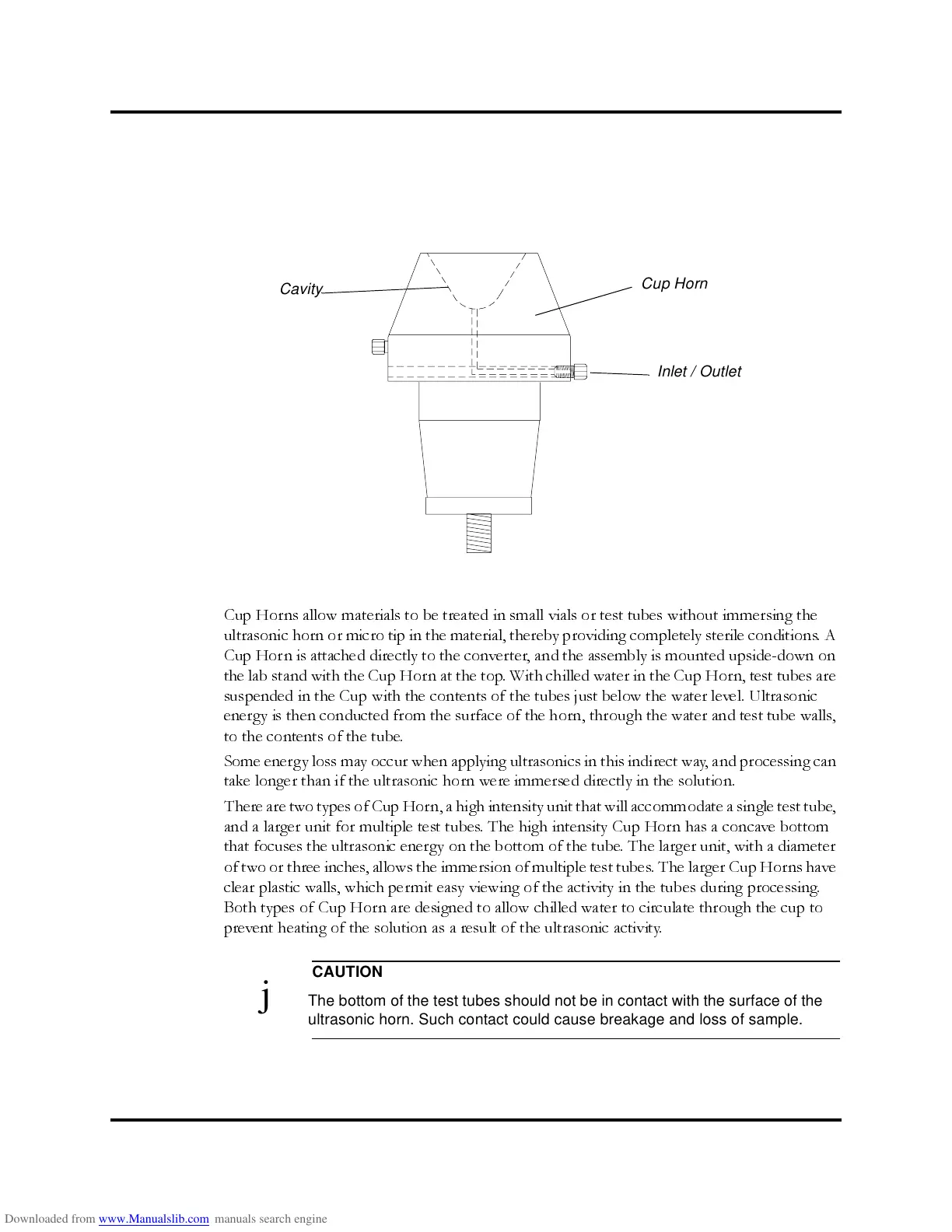 There are two types of Cup Horn, a high intensity unit that will accommodate a single test tube,