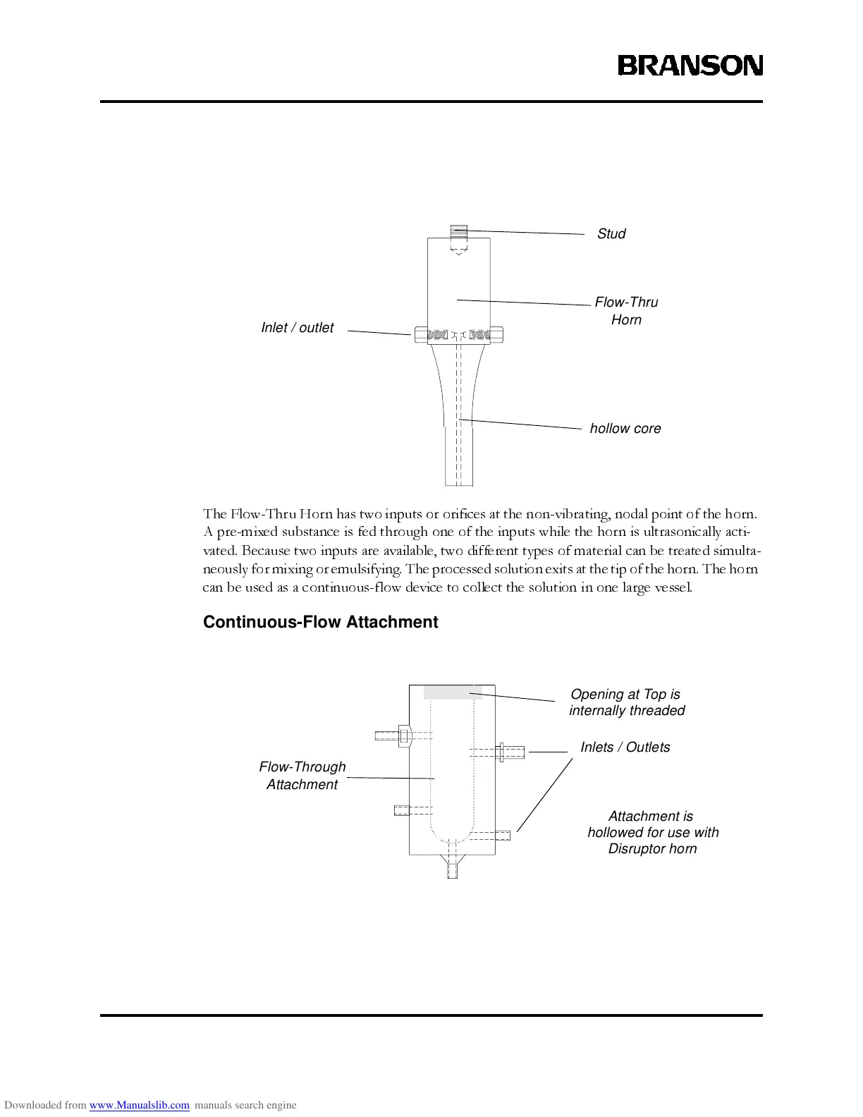 neously for mixing or emulsifying. The processed solution exits at the tip of the horn. The horn