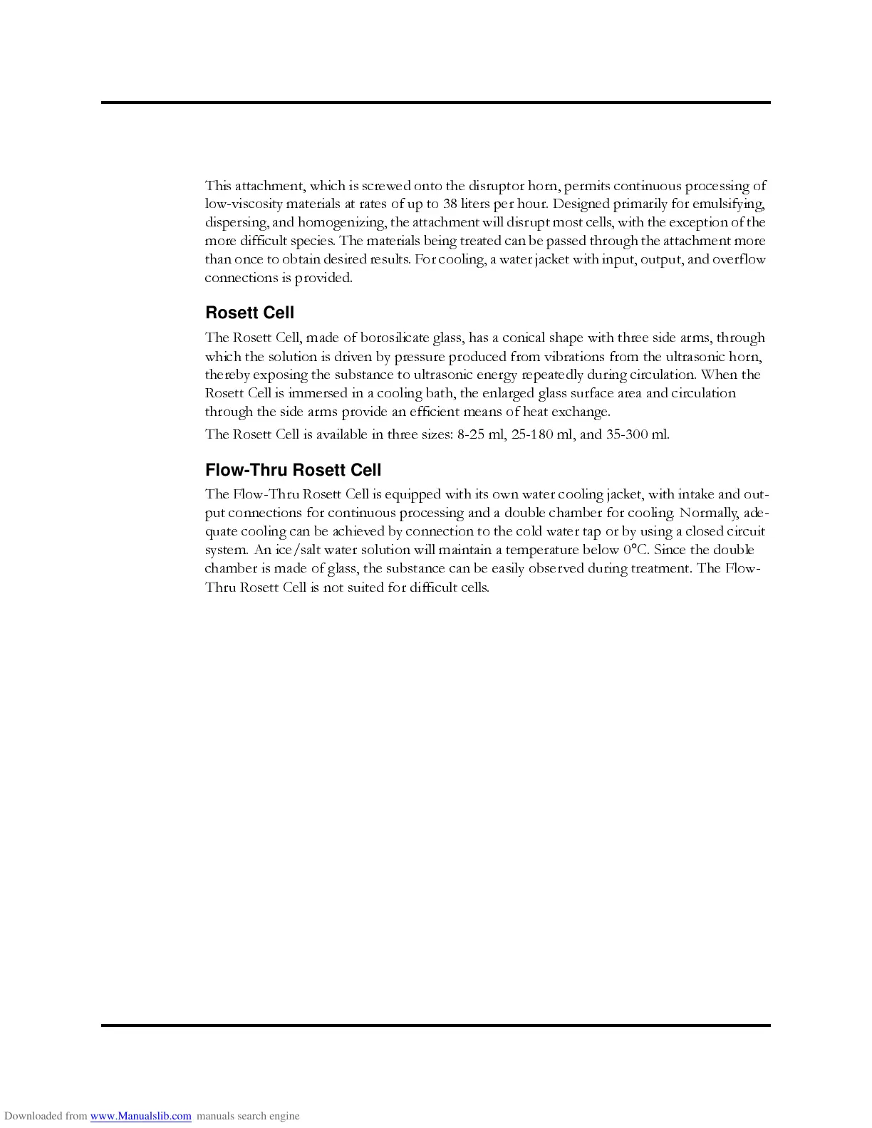 This attachment, which is screwed onto the disruptor horn, permits continuous processing of