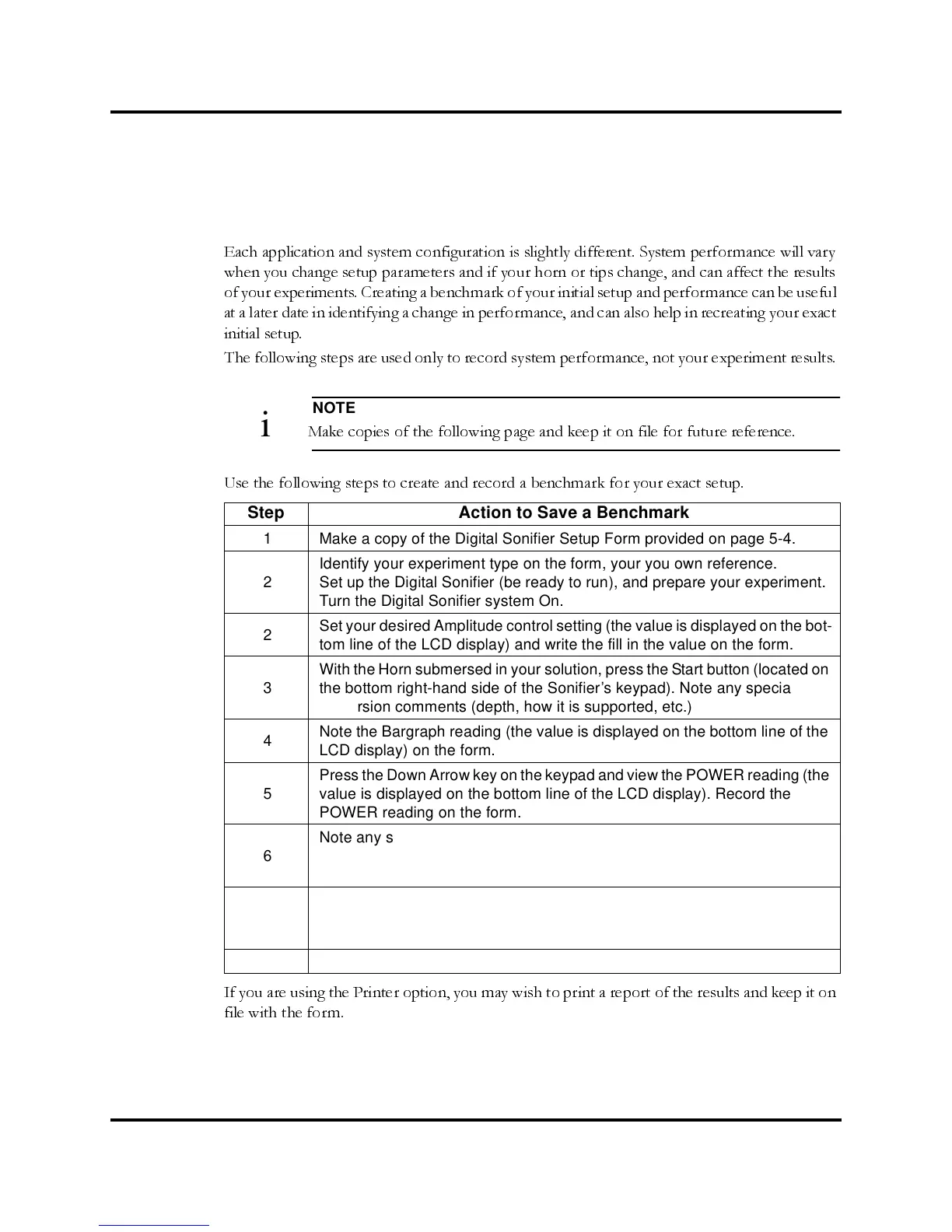 the bottom right-hand side of the Sonifier’s keypad). Note any special