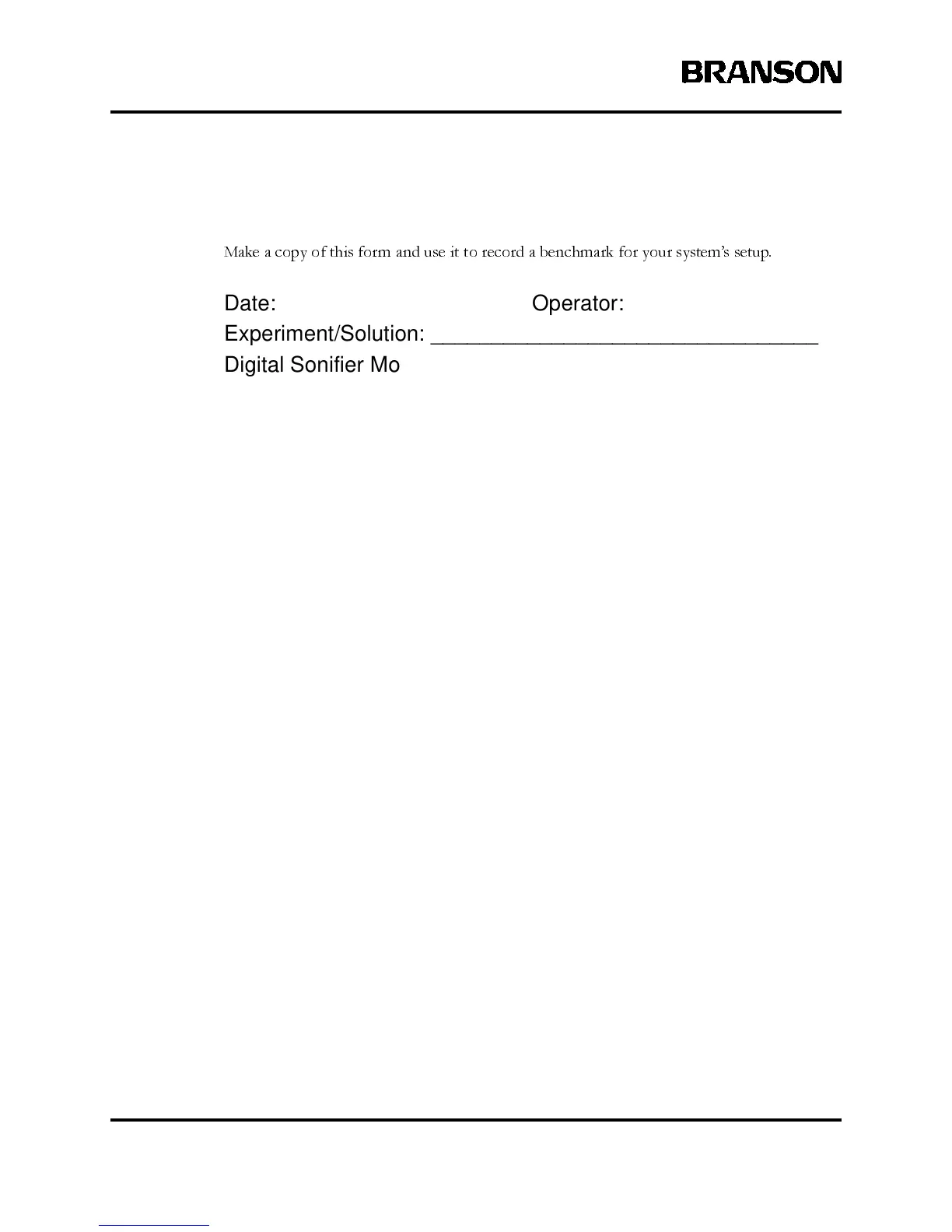 Make a copy of this form and use it to record a benc h mark for your system’s setup.