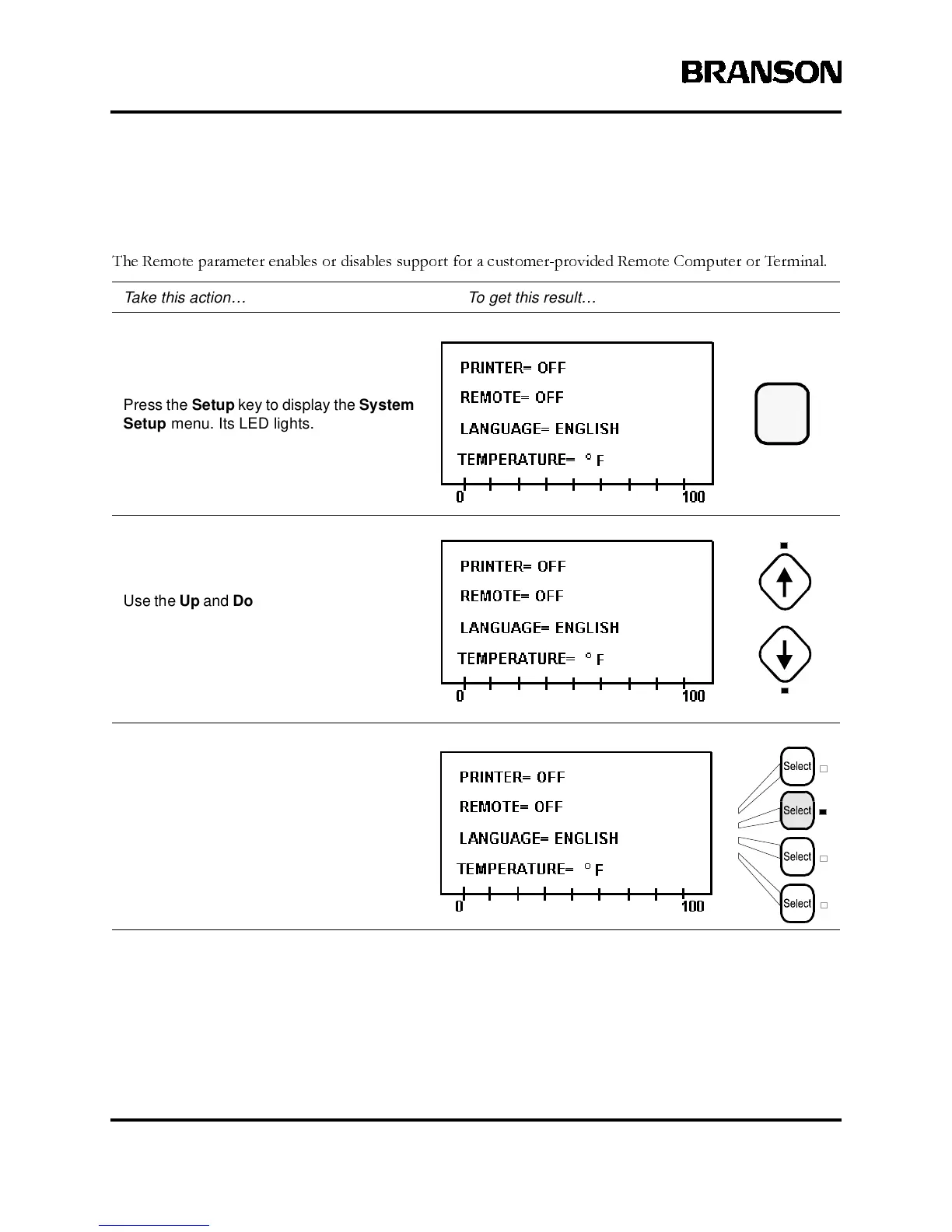 Press the Setup key to display the System