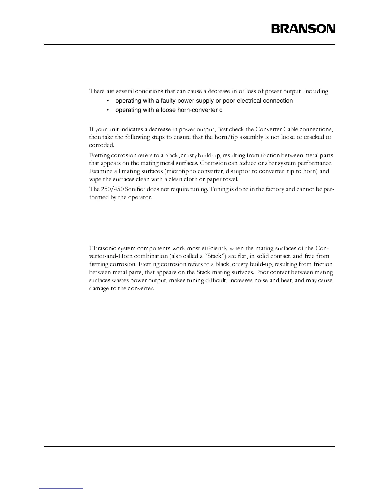 • operating with a cracked or corroded horn/tip assembly.