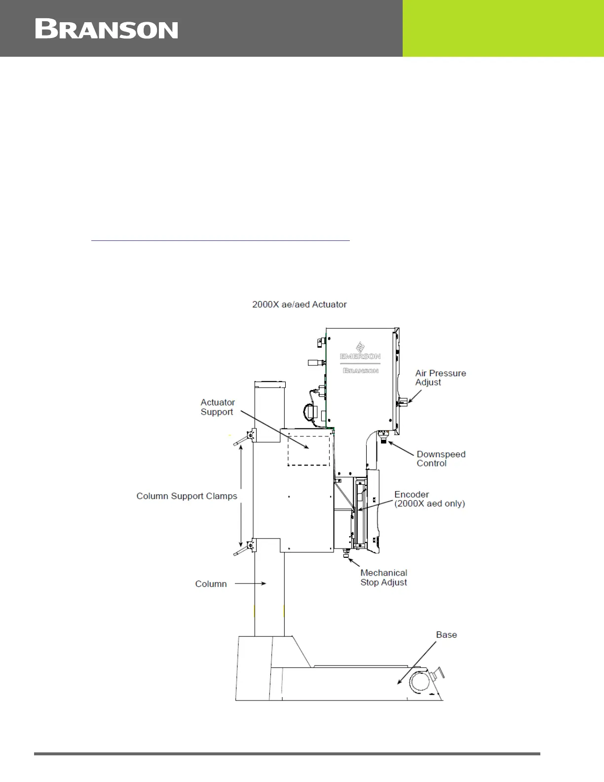 This manual covers the Branson 2000X aed Actuator. The 2000X aed Actuator may be