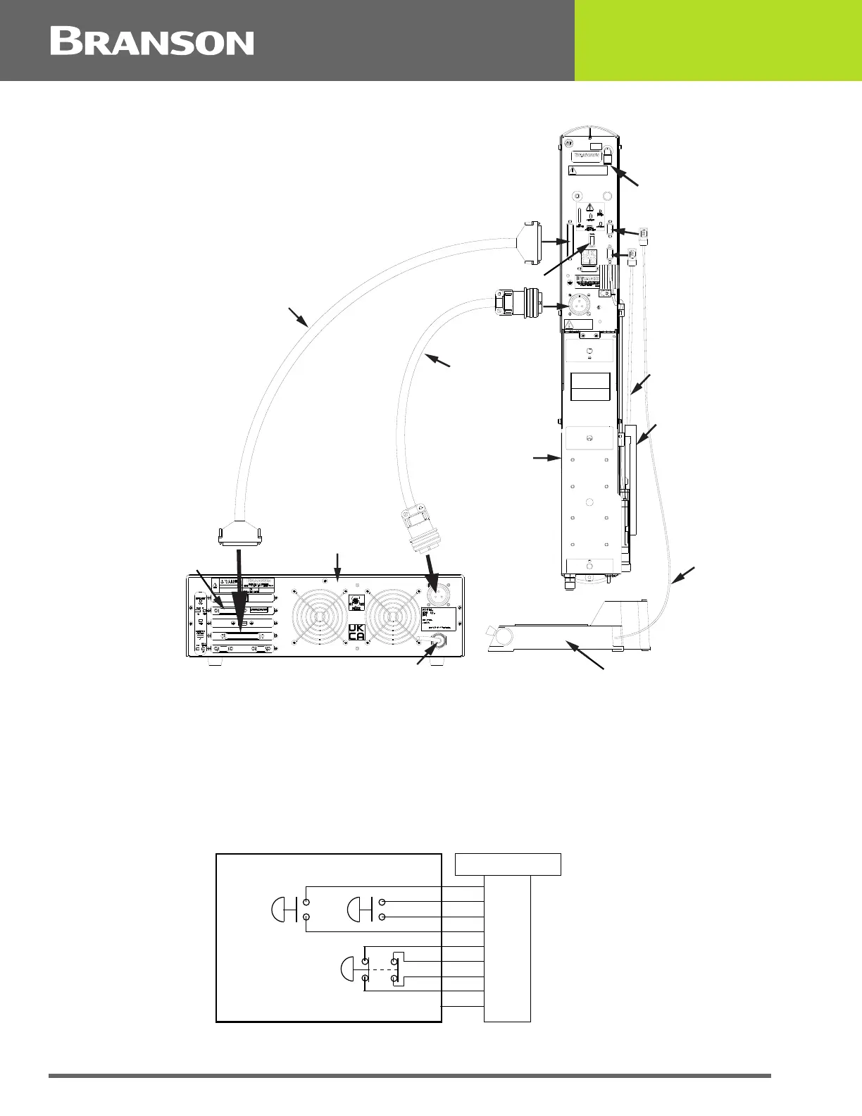 A Branson actuator requires two start switches and emergency stop connection. Stands on