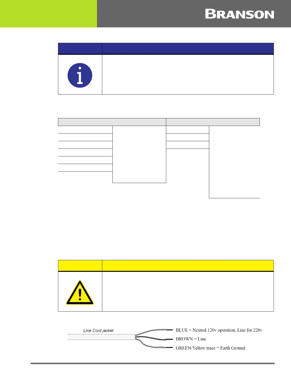 Figure 4.19 Line Cord Color Code