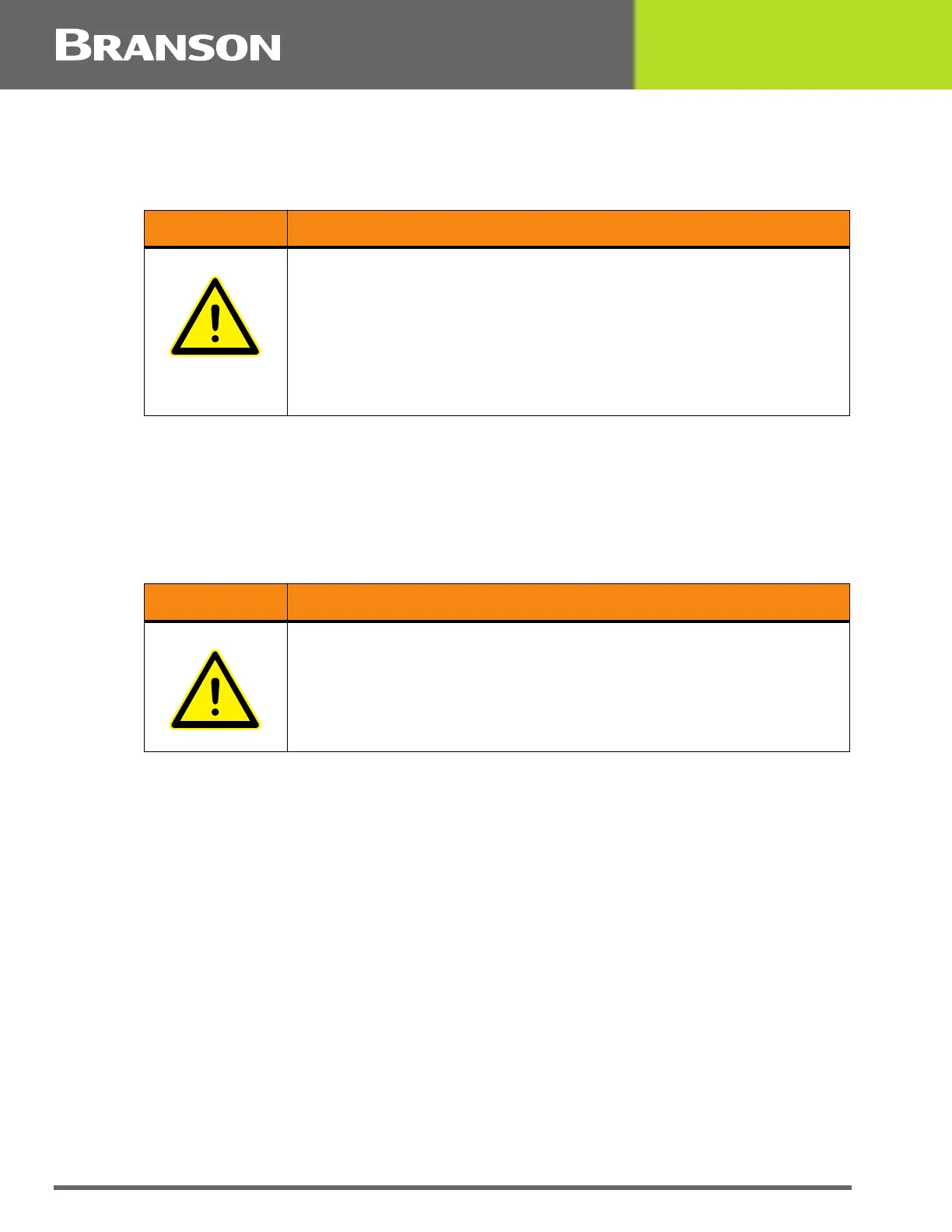 pinched between the horn and the fixture. Contact Branson for