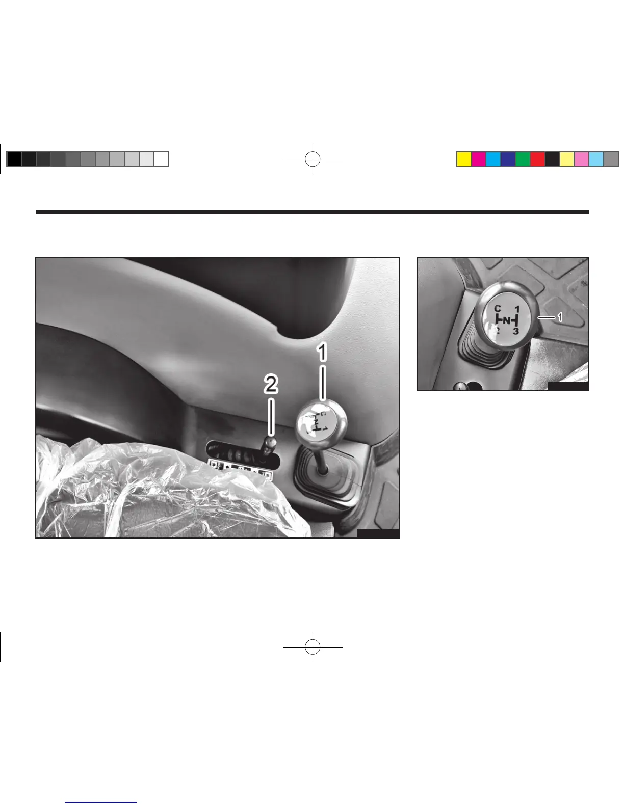 (1) Range Gear Shift Lever (2) PTO Shift Lever (3) Parking Brake Lever