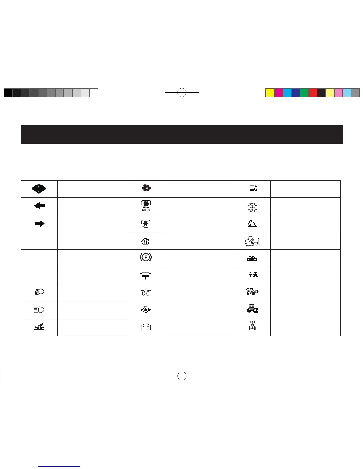 This manual includes symbol marks of controller to ease tractor’s maneuverability and maintenance. These