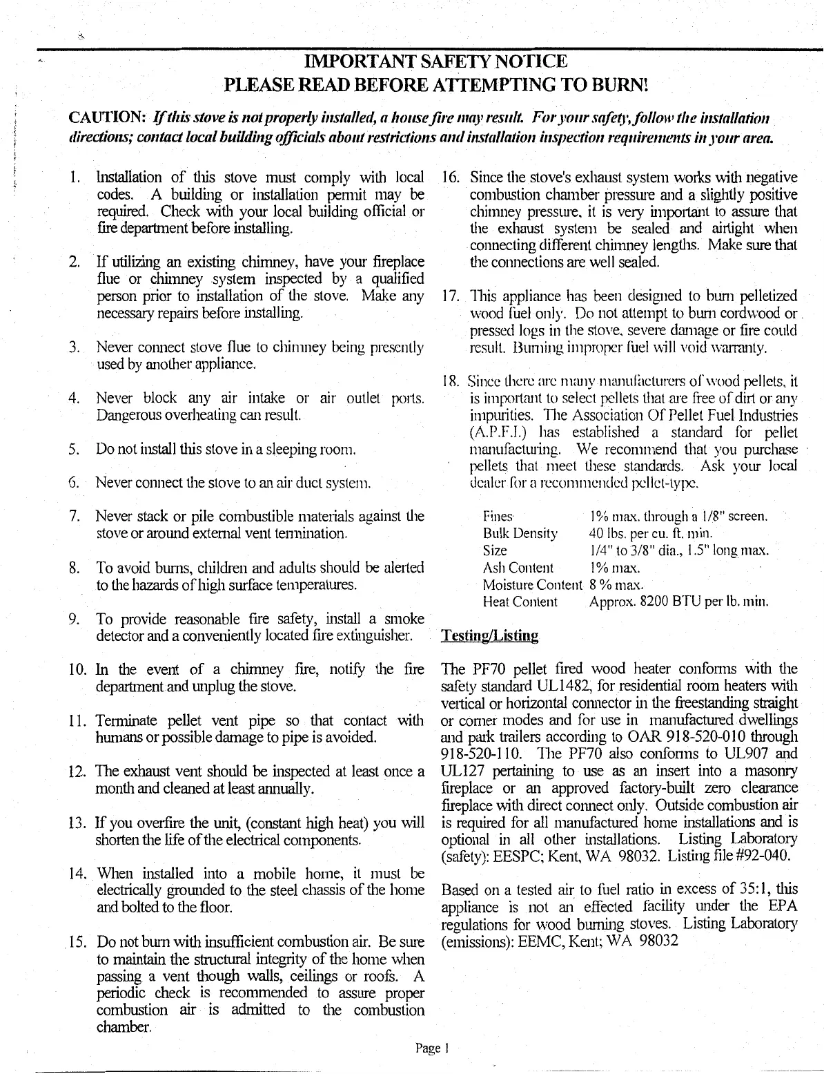 Brass Flame PF70 - Important Safety Notice; General Safety Precautions