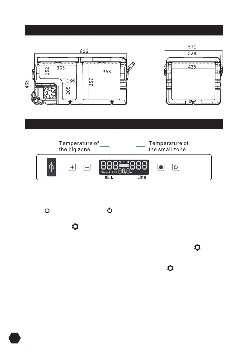 to switch the left or right box temperature setting. Press “+” or “-” to adjust the