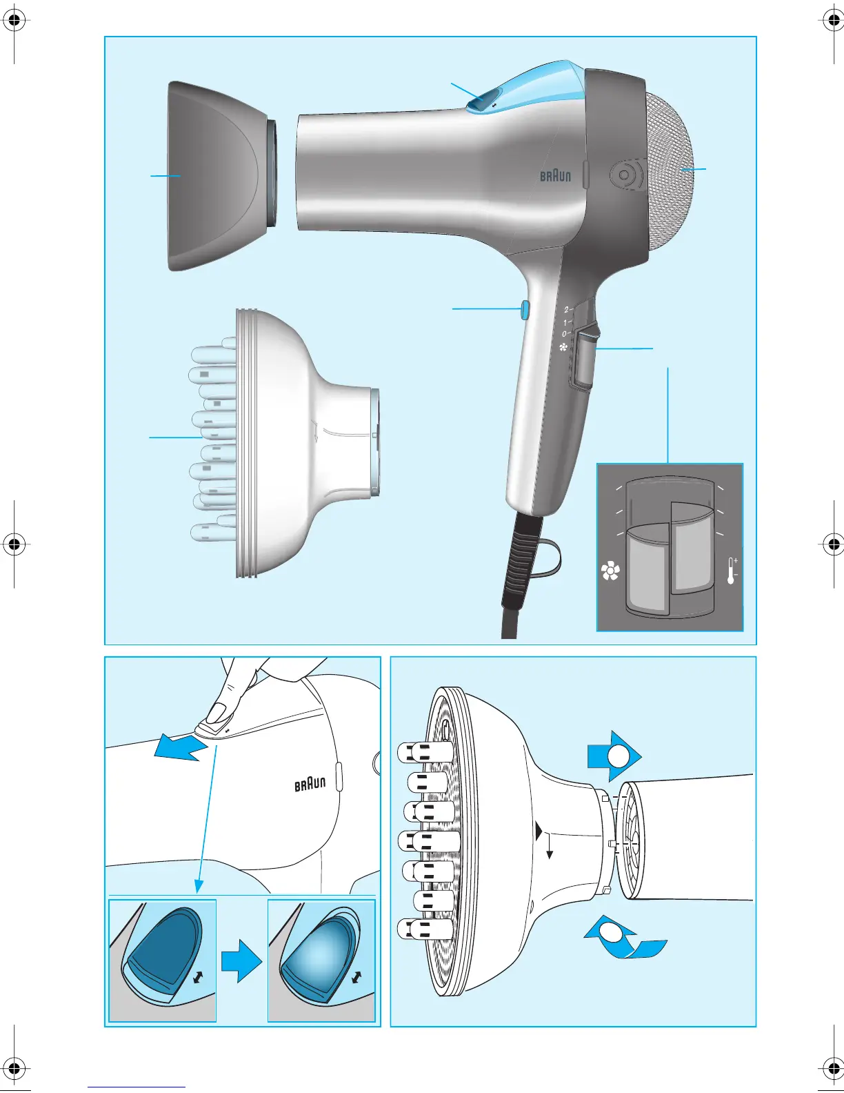 Braun 3539 - Product Components and Diagram; Hair Dryer Parts Identification; Accessory Illustrations