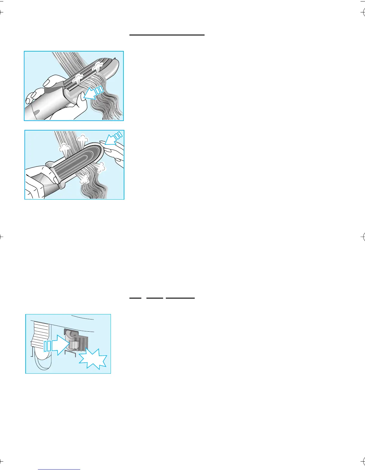 tietyllä etäisyydellä päänahasta. Suoristaessasi hiuksia, liu'uta