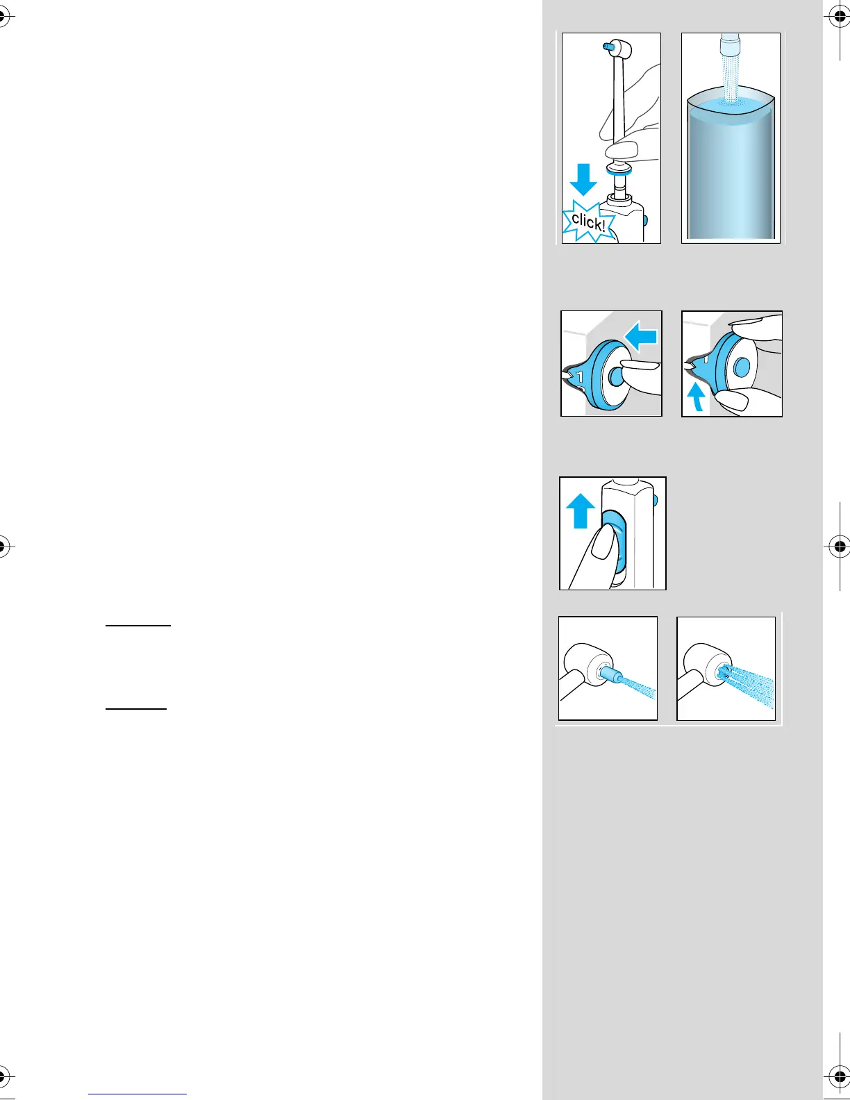 for å starte vannstrålen. Hold munnen litt åpen slik at