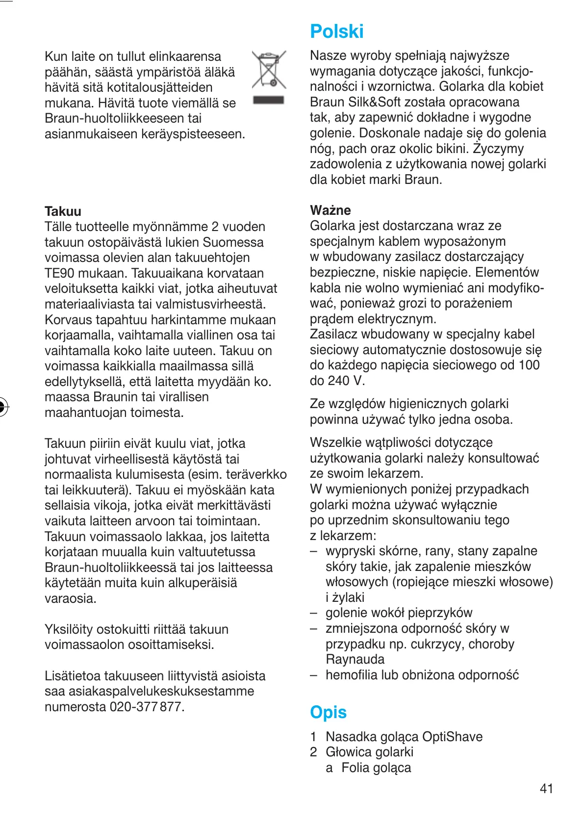 Braun-huoltoliikkeessä tai jos laitteessa