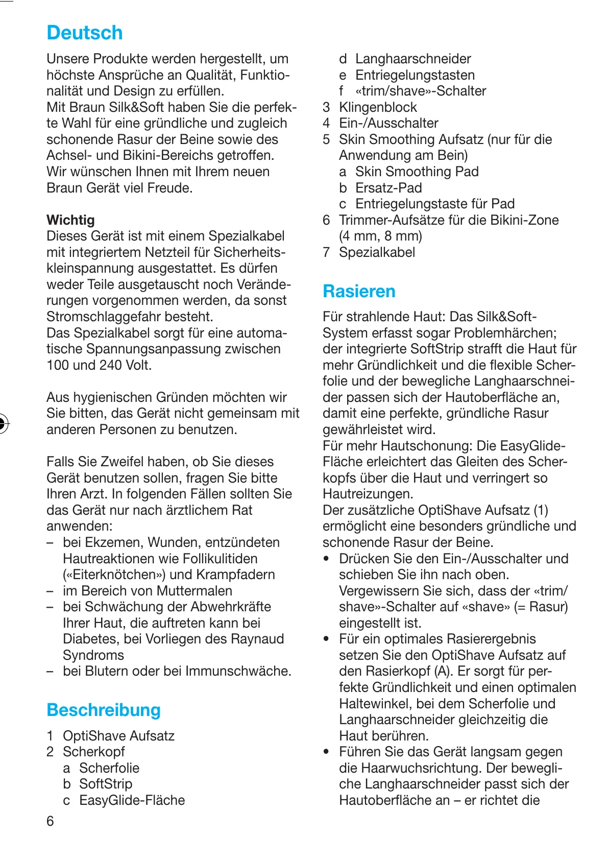 schonende Rasur der Beine sowie des