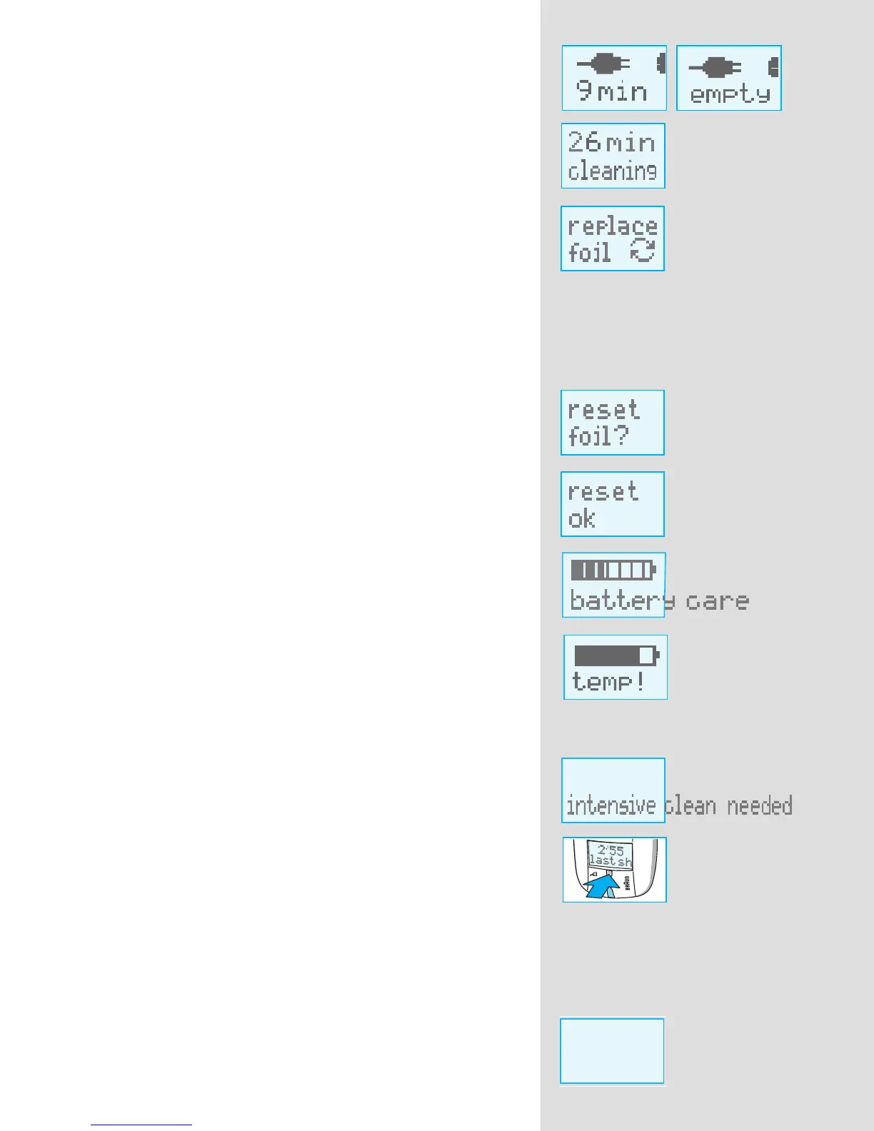 11. Info key, press once: duration of last shave.