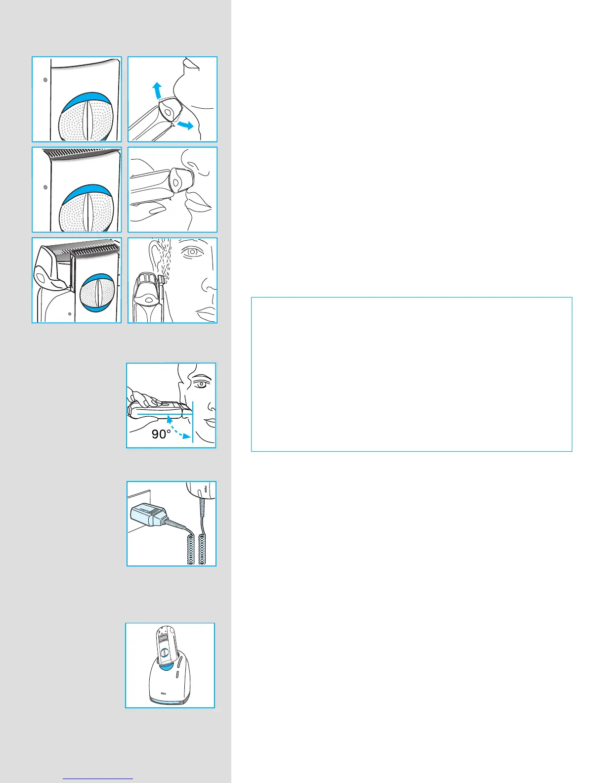 • Tenir le rasoir à angle droit (90°) par rapport à la