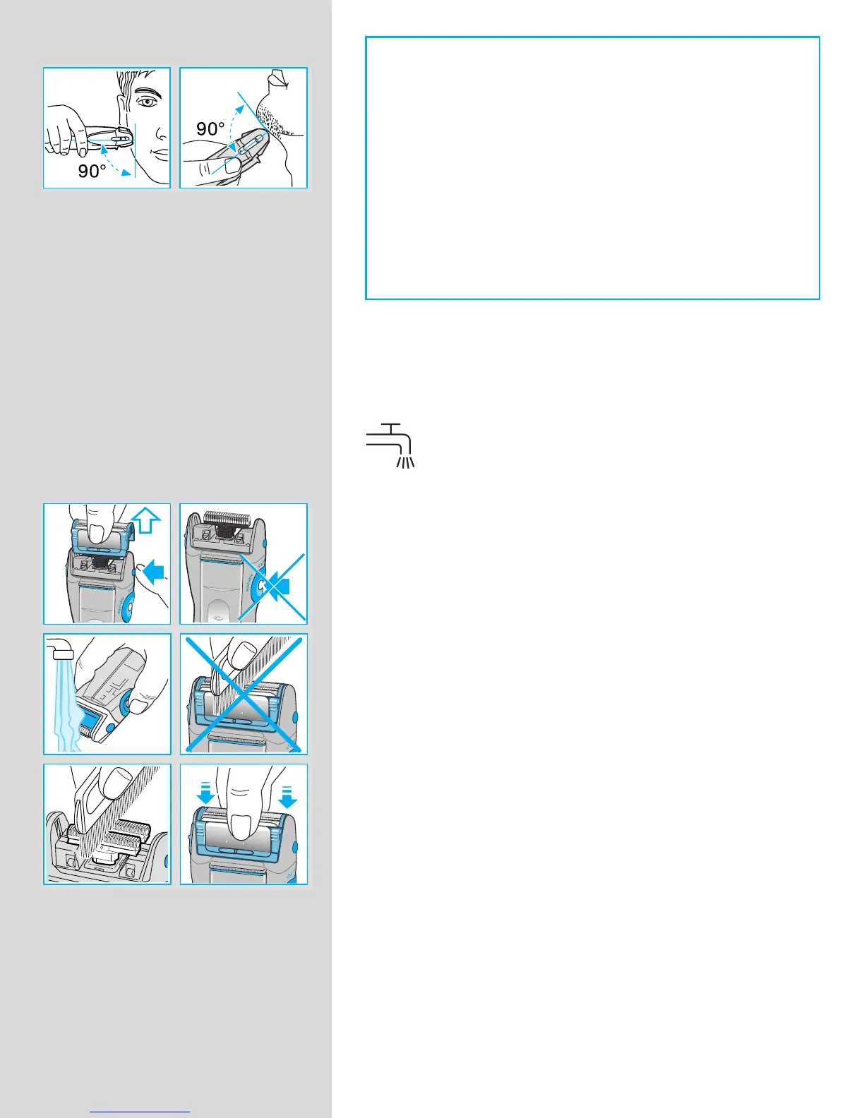 • Tenez le rasoir perpendiculairement (90°) à la peau.