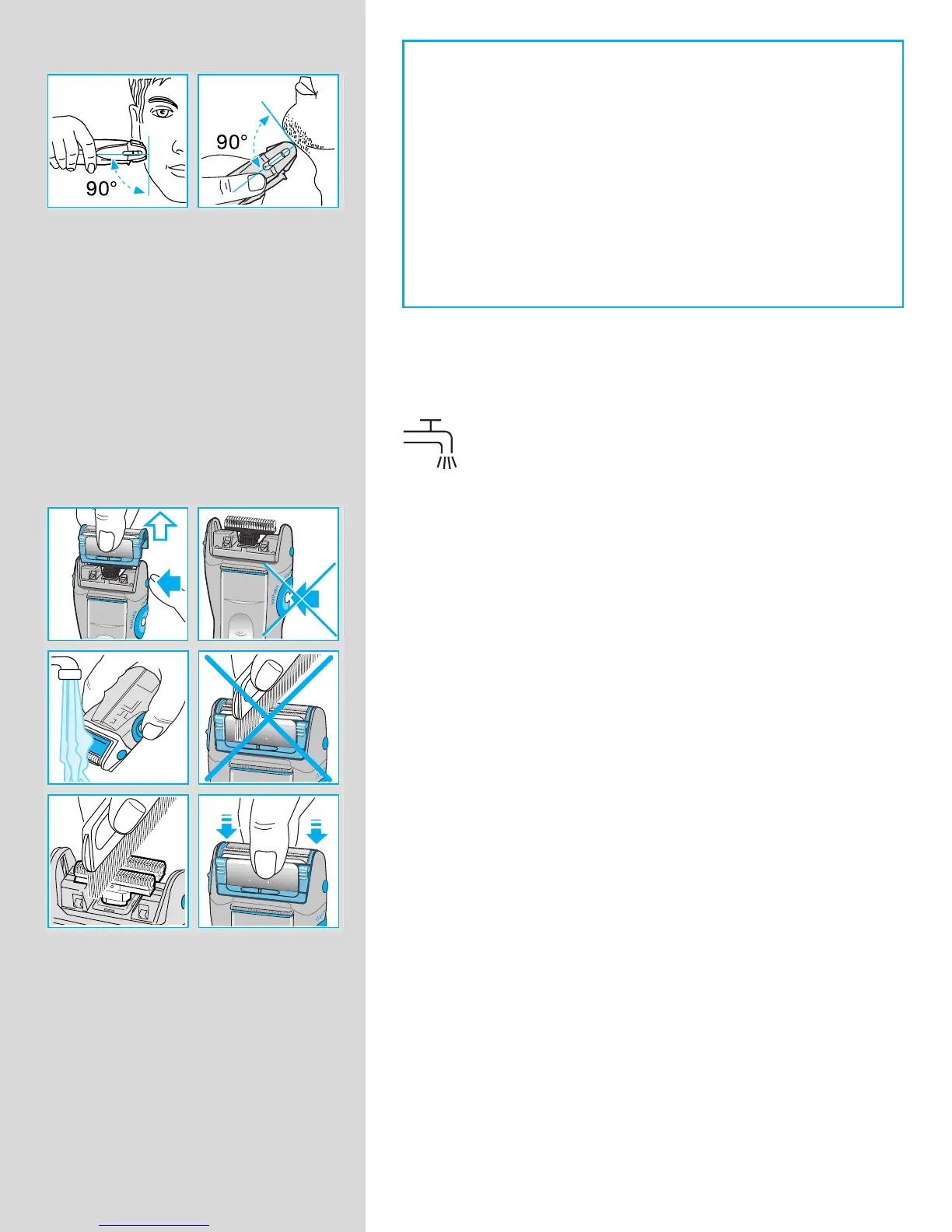a kést és a borotvafej belsŒ részeit. Helyezze vissza a