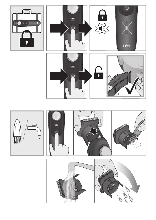 Braun 5808 - Device Operations and Cleaning; Travel Lock Function; Cleaning the Trimmer Head