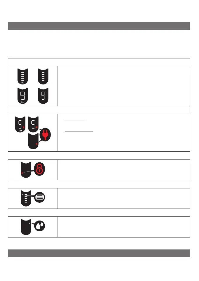 • The table below shows the icons that can appear on the shaver display.