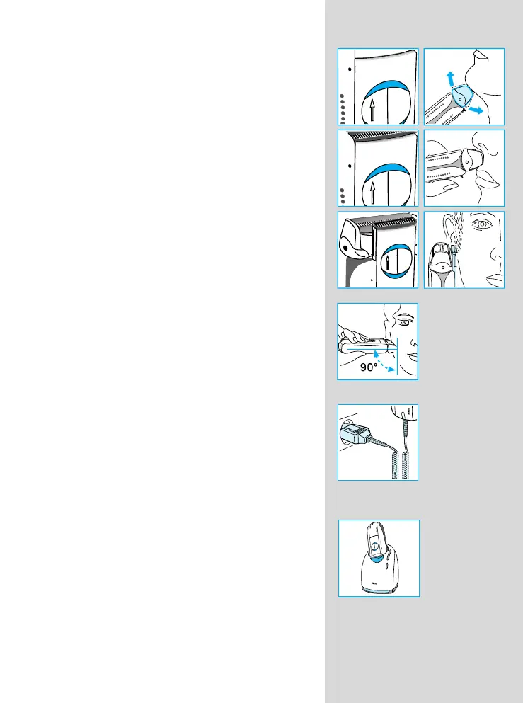 Máquina a um ângulo (90°) para a direita da sua pele.