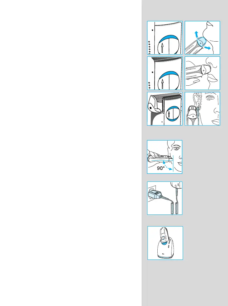 Houd het scheerapparaat altijd loodrecht (90°) op de huid.