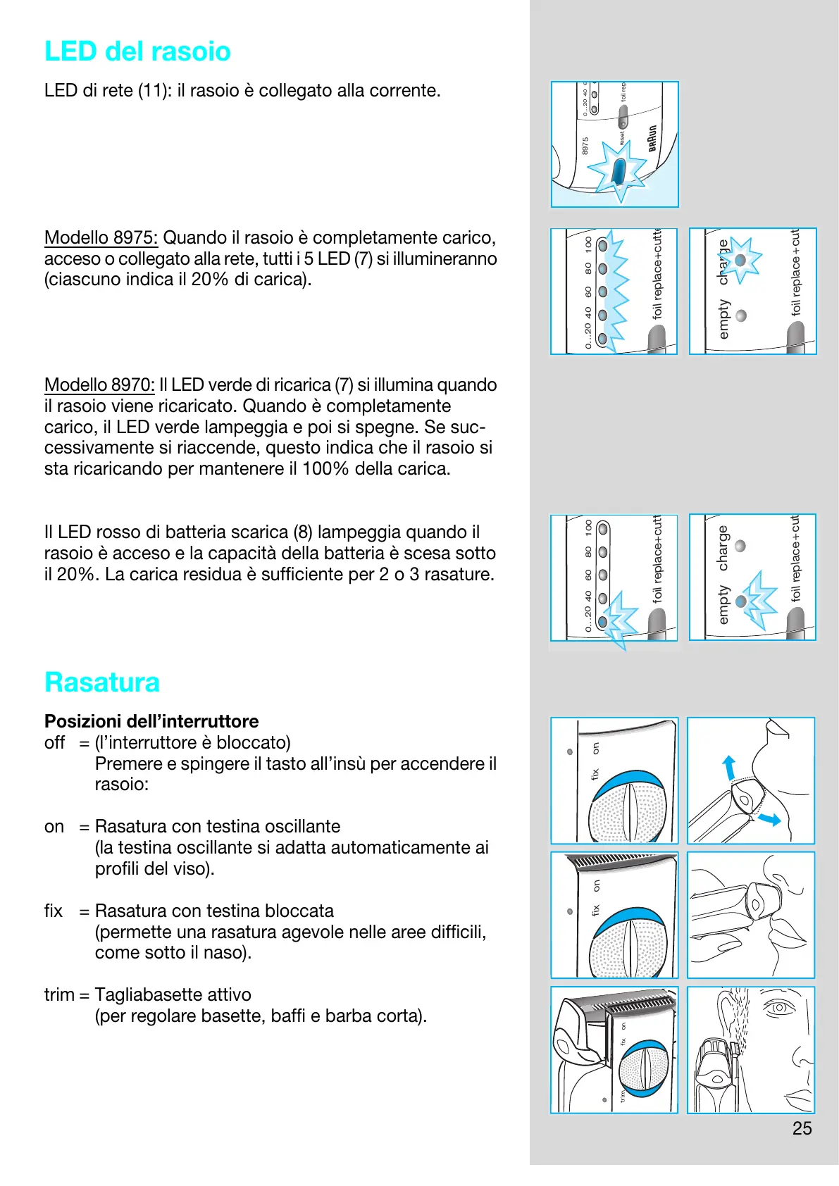 Modello 8970: Il LED verde di ricarica (7) si illumina quando