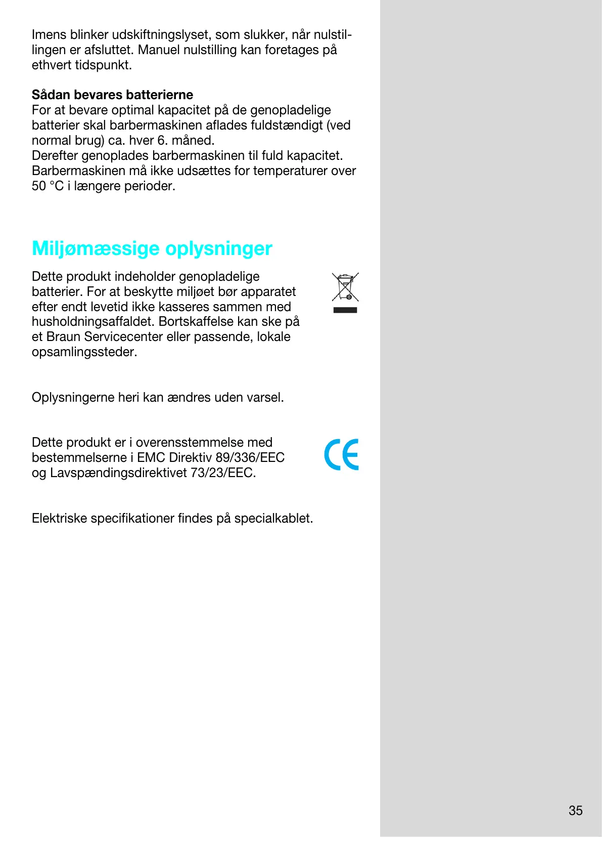 batterier skal barbermaskinen aflades fuldstændigt (ved