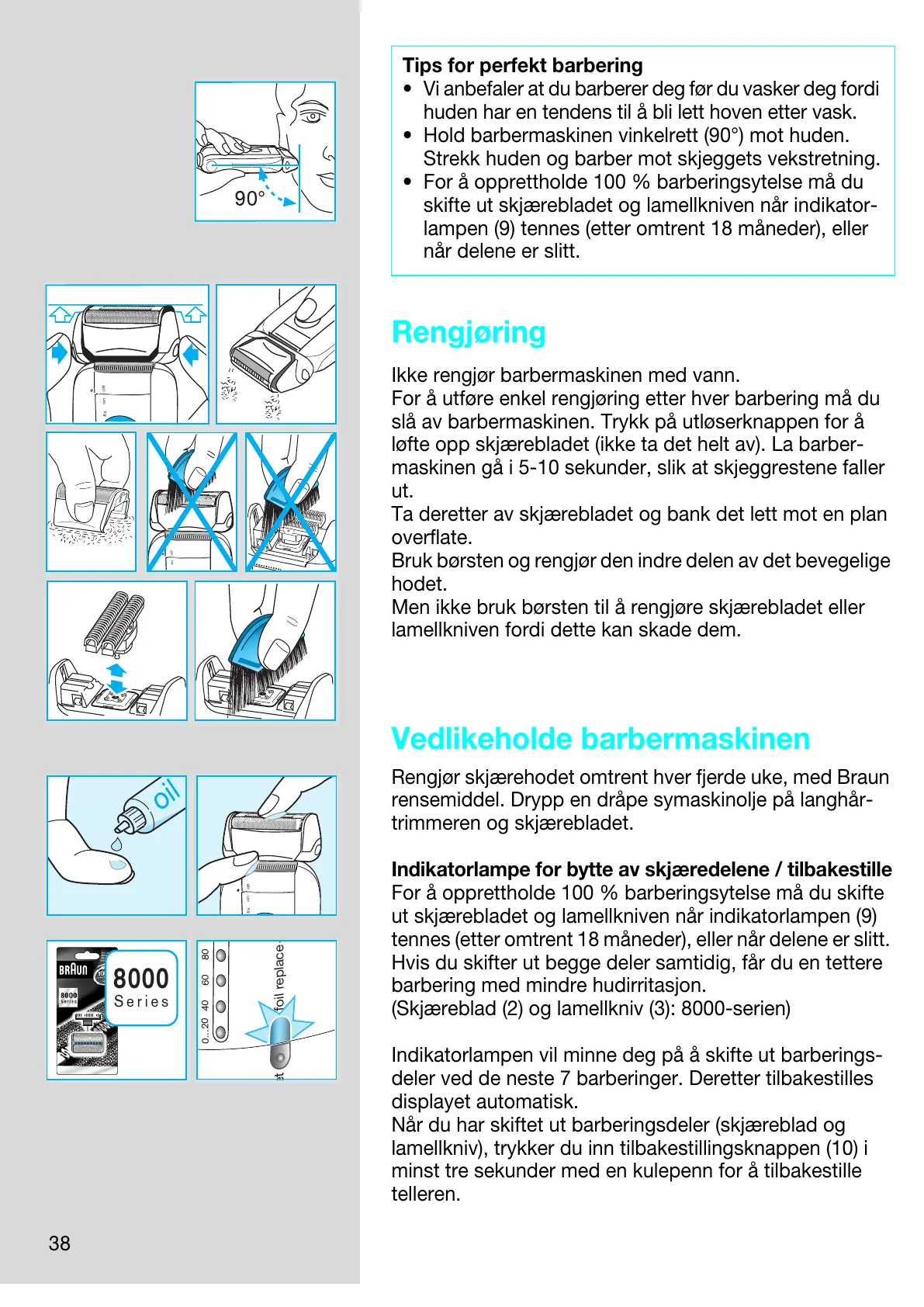 • For å opprettholde 100 % barberingsytelse må du