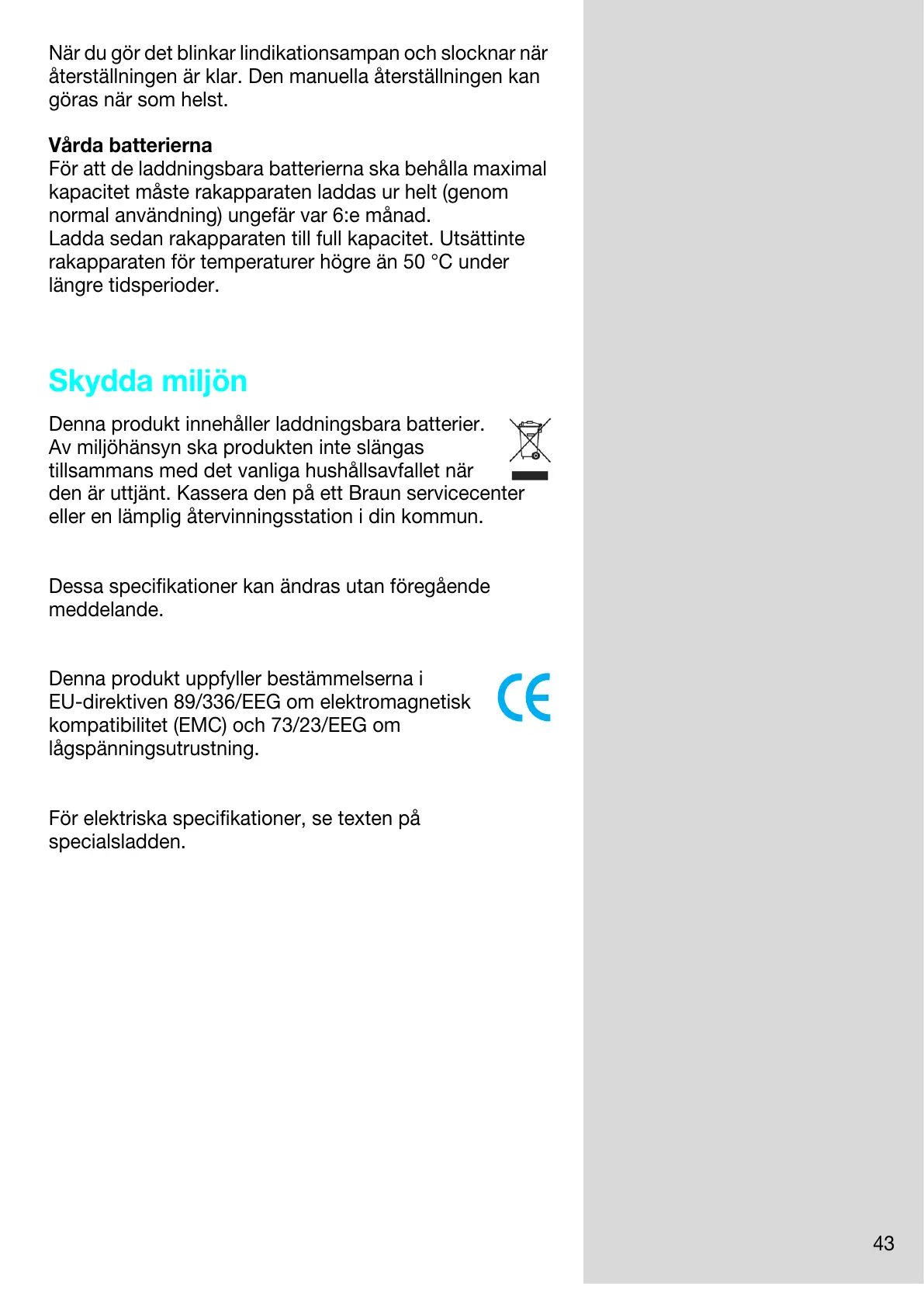 Av miljöhänsyn ska produkten inte slängas