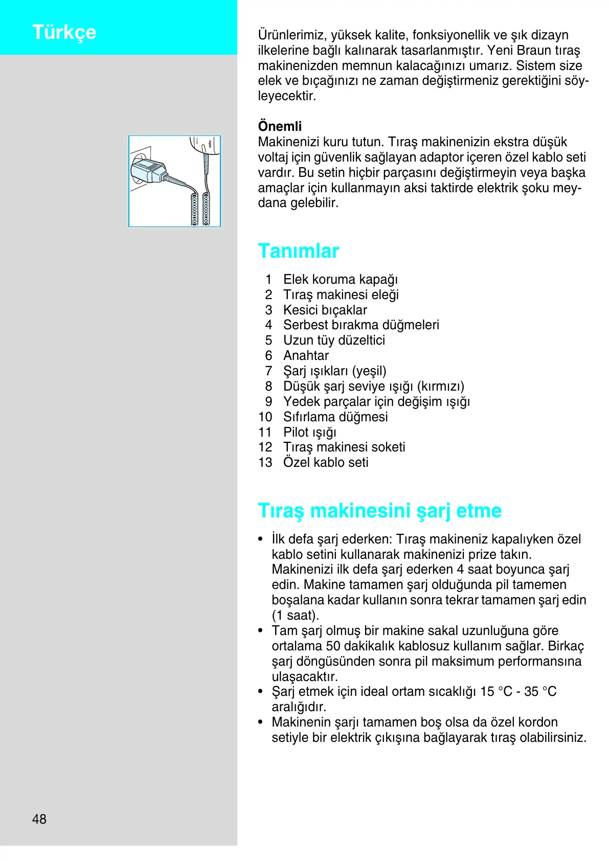 Tıraµ makinesini µarj etme