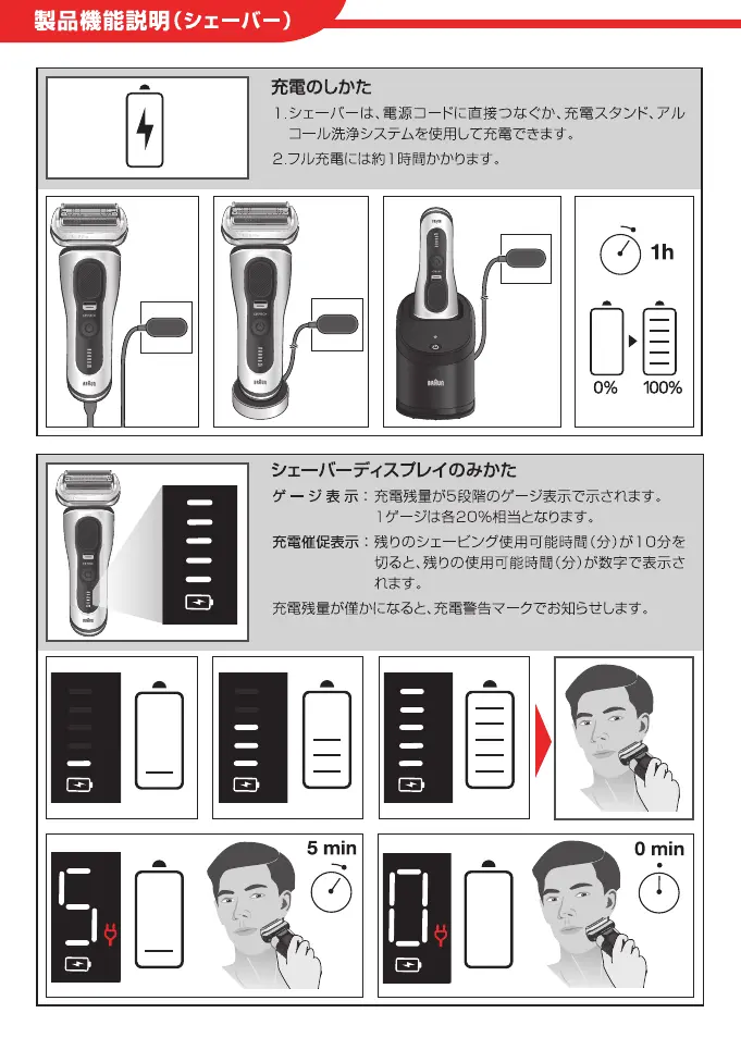 Braun 9 PRO+ Series - Shaver Function Guide; Shaver Charging Instructions