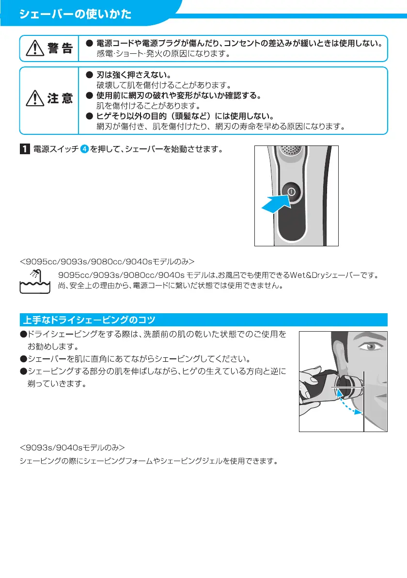 Braun 9090cc - Shaver Operation Guide; Shaver Operation Safety